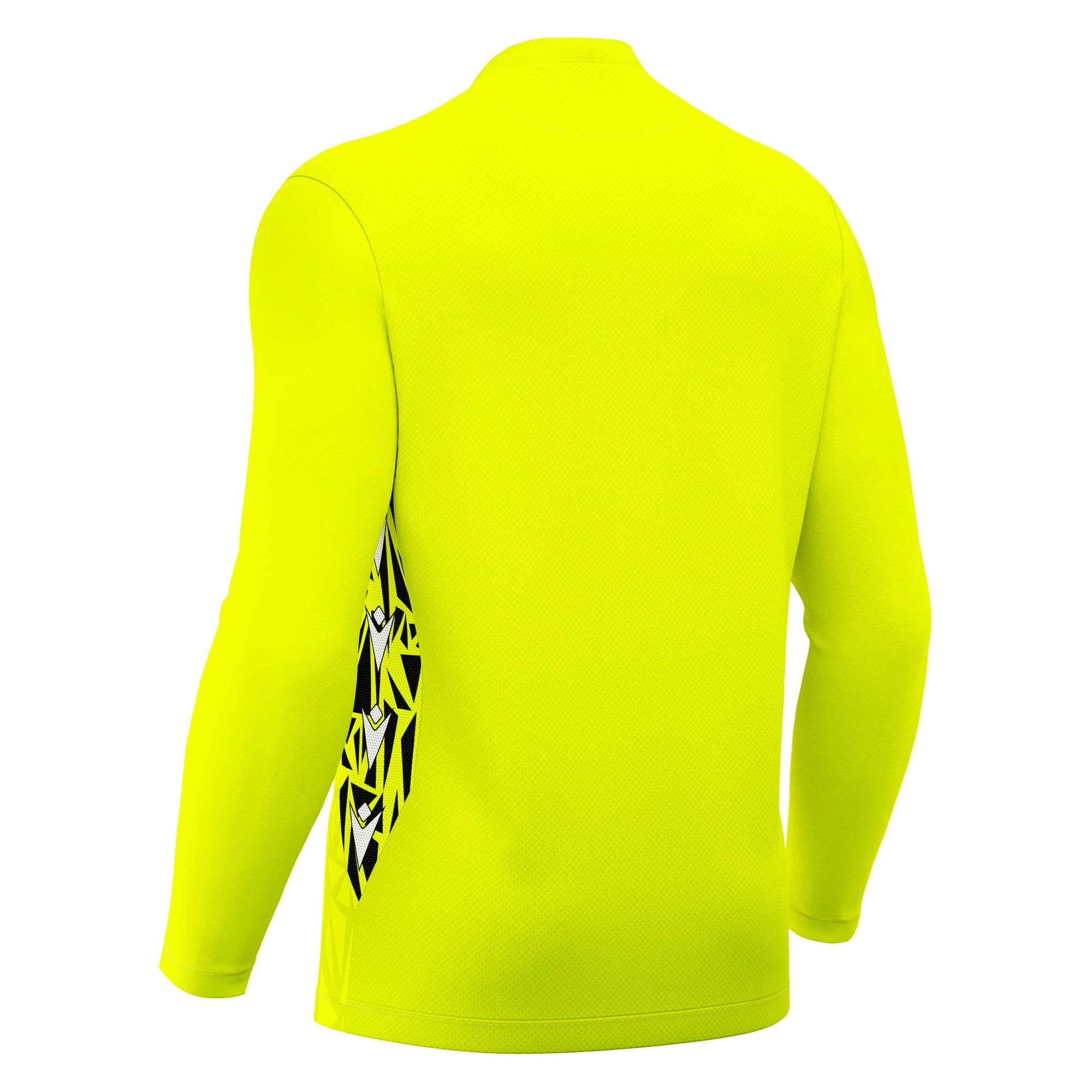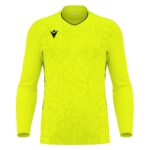 Torwarttrikot mit vollständiger Fertigung aus Eco Fabric, zu 100 % aus recyceltem PET. V-Ausschnitt aus Strick mit Paspeln auf der Vorderseite. Die Rückseite besteht aus Eco-Micromesh, um eine hervorragende Atmungsaktivität zu gewährleisten. Das Trikot verfügt über eine sublimierte farblich abgestimmte Textur auf der Vorderseite und Eco-Mesh-Einsätze an den Seiten, welche die gleiche Textur mit Macron Hero aufgreifen. In 4 Farbvarianten erhältlich.