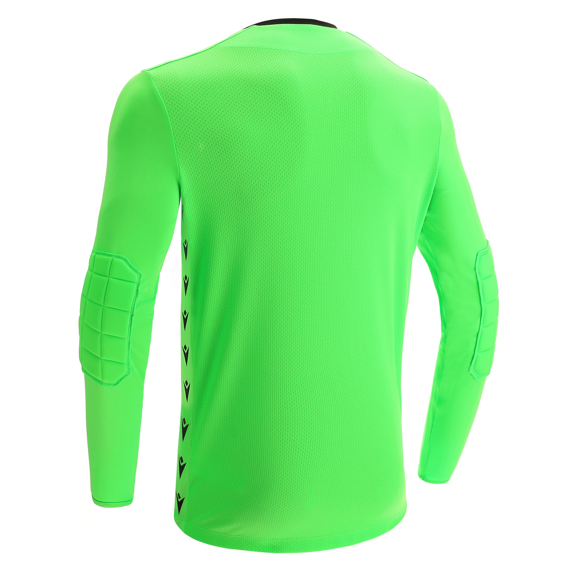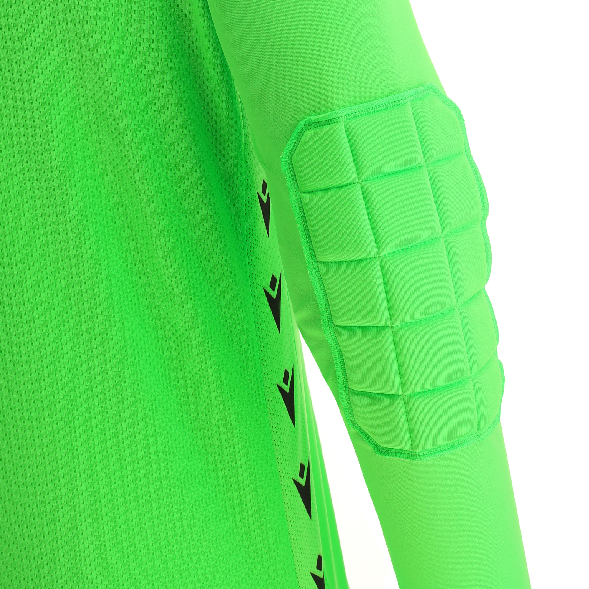 Torwarttrikot aus 100 % Polyester-Softlockgewebe. V-Ausschnitt. Leichte Polsterung am Ellbogen für Aufprallschutz. Mesh-Seiteneinsätze mit sublimiertem Macron Hero. Rücken aus Micromesh für maximale Atmungsaktivität.