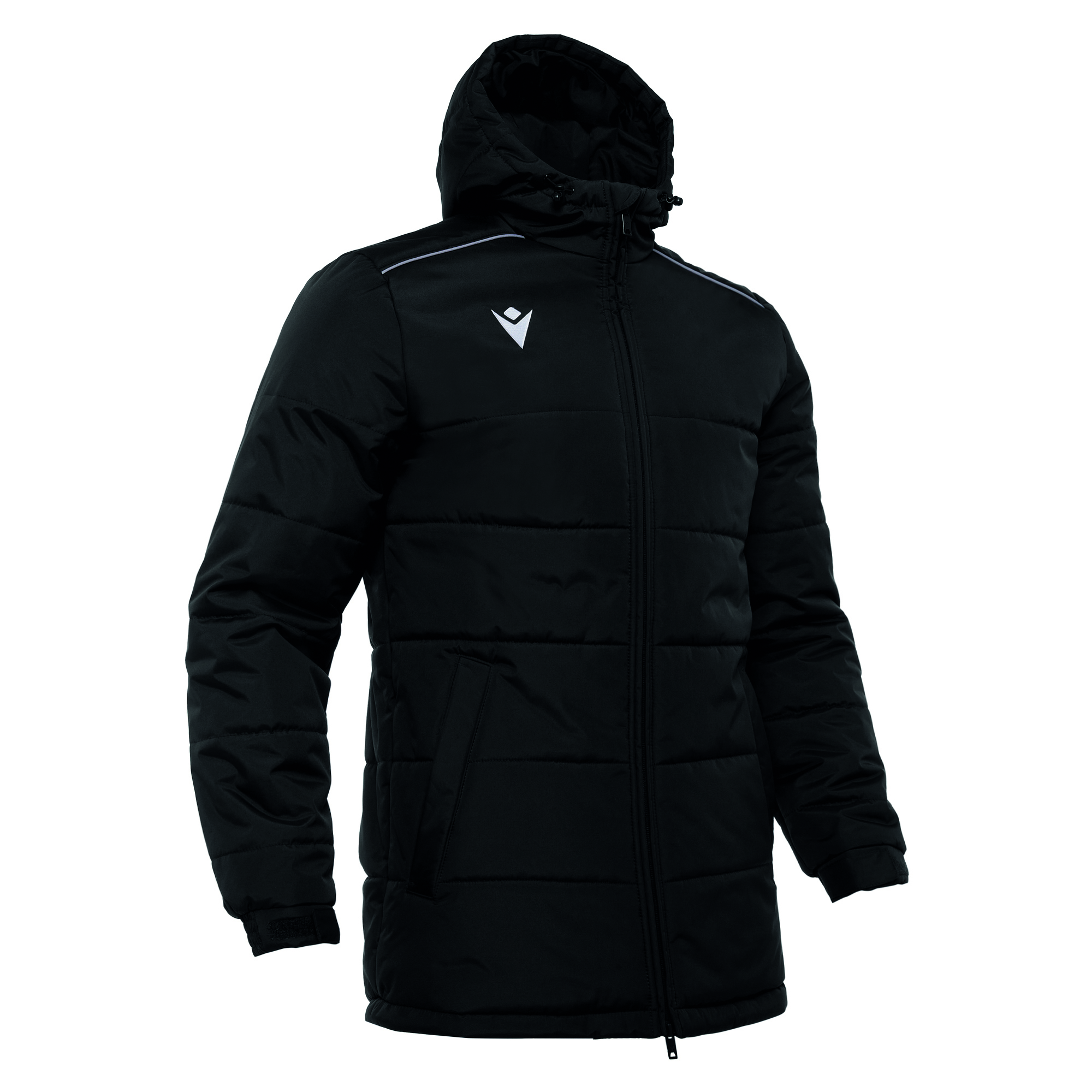 Gepolsterte Jacke Gyor aus Chamtex-Material (100 % Polyester), ein vielseitiger Stoff, der dank einer speziellen internen Abdichtungsbehandlung shower proof ist. Kleidungsstück mit Kapuze und starken technischen Merkmalen, ideal zum Warmhalten auf der Tribüne oder auf der Spielerbank an kalten Tagen. Artikel erhältlich in einem weiten Größenangebot, von Kinder- bis Erwachsenengrößen. Seitentaschen mit Knöpfen und Innenfutter aus Fleece.