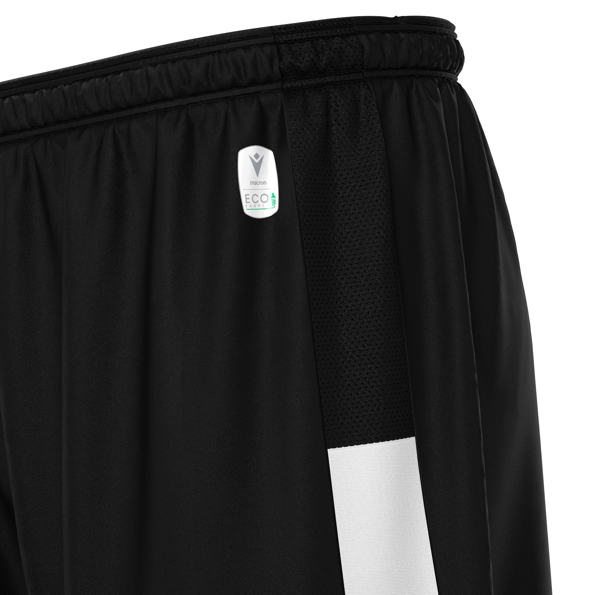 Shorts aus Eco Softlock mit flachem Kordelzug und Eco-Mesh-Einsätzen an den Seiten. Macron Hero in weißer Stickerei auf der Vorderseite.