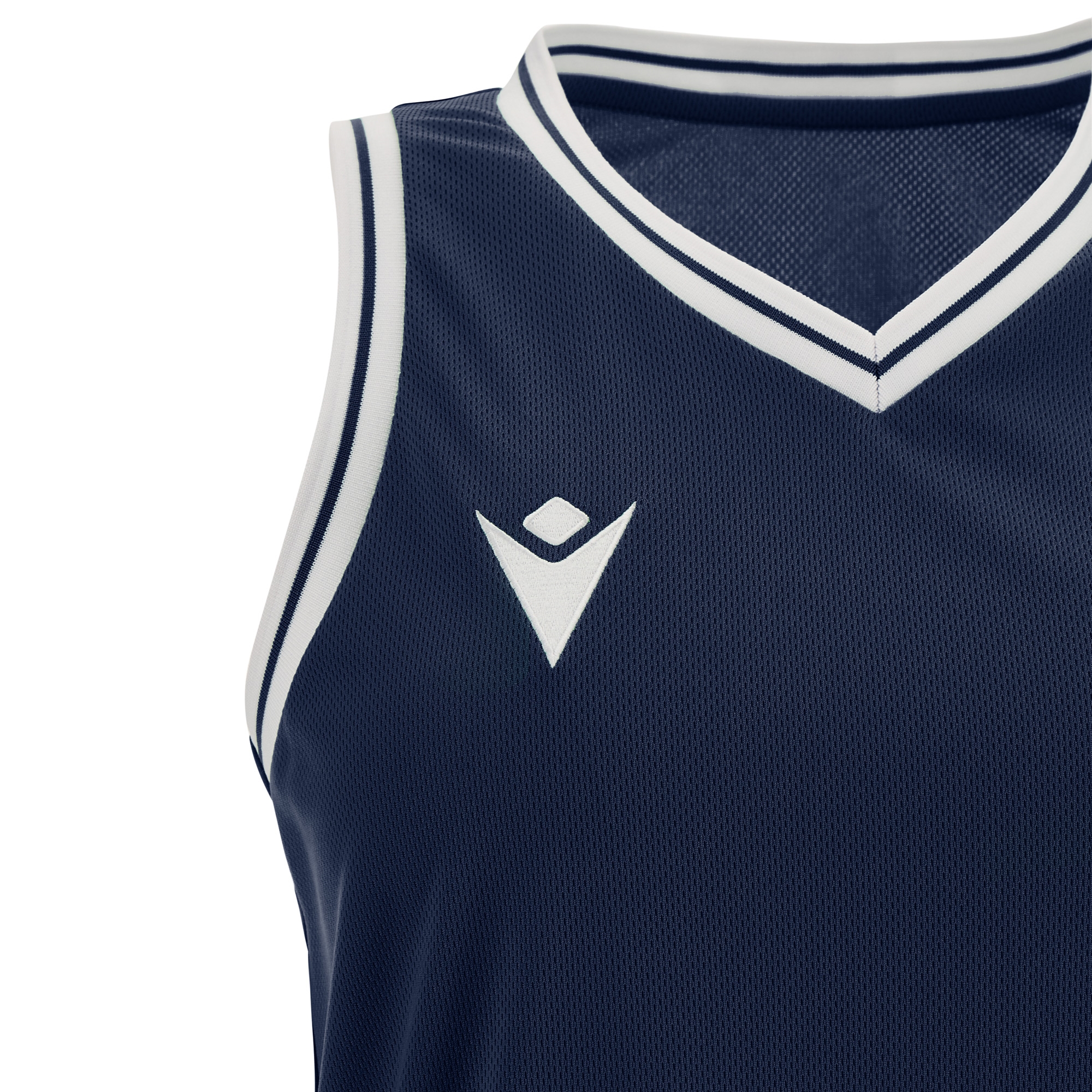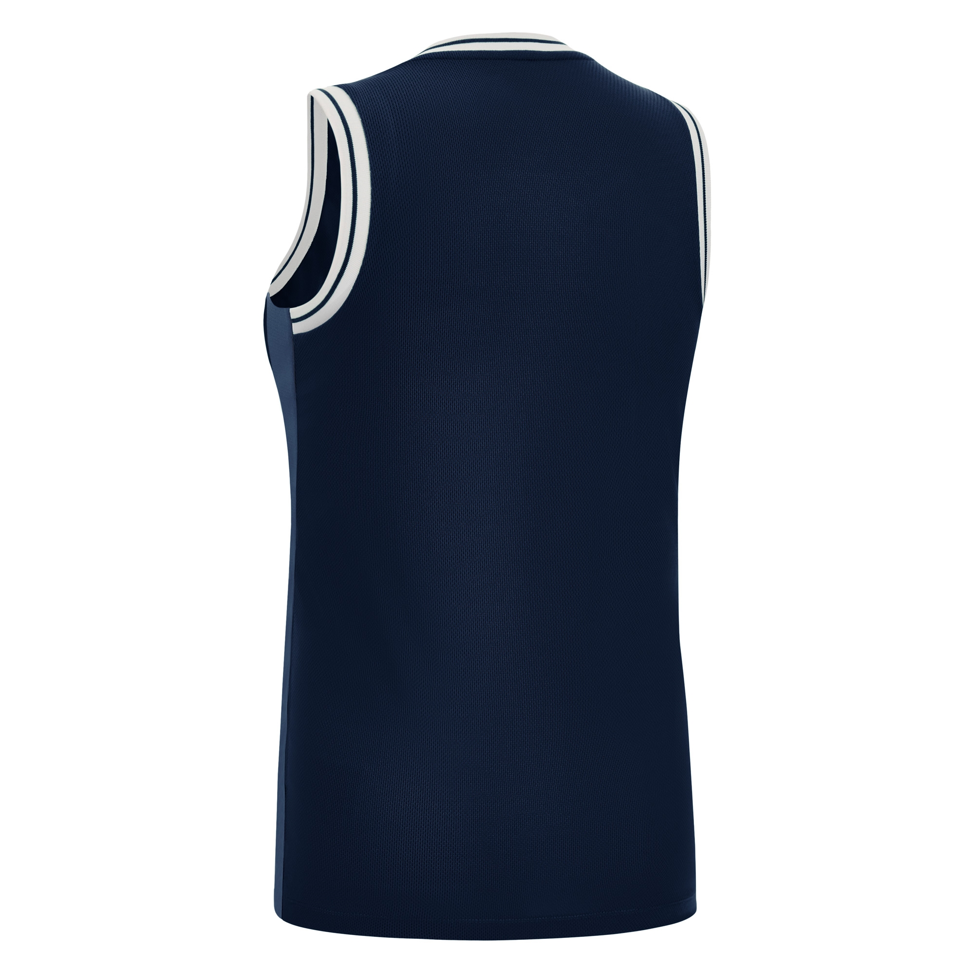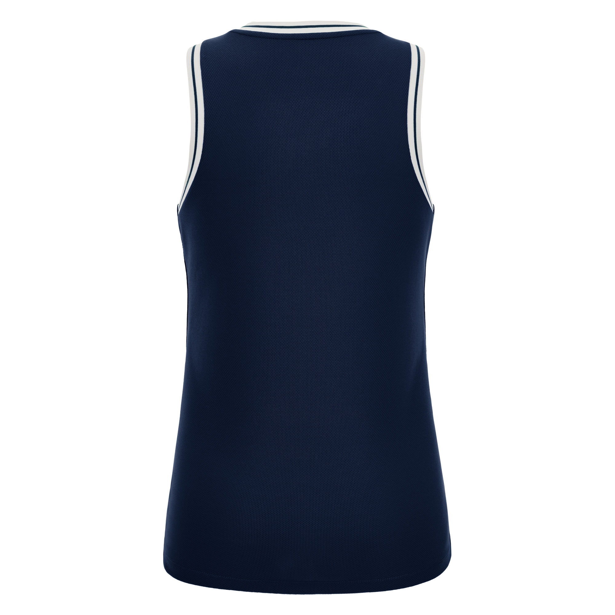 Ärmelloses Damen-Trikot mit schmaler Schulter aus Eco-Fabric, zu 100% aus recyceltem PET. Der V-Kragen und die Armausschnitte sind aus zweifarbigem Strick gefertigt, die seitlichen Einsätze dagegen aus Eco-Mesh, um die Atmungsaktivität zu optimieren.